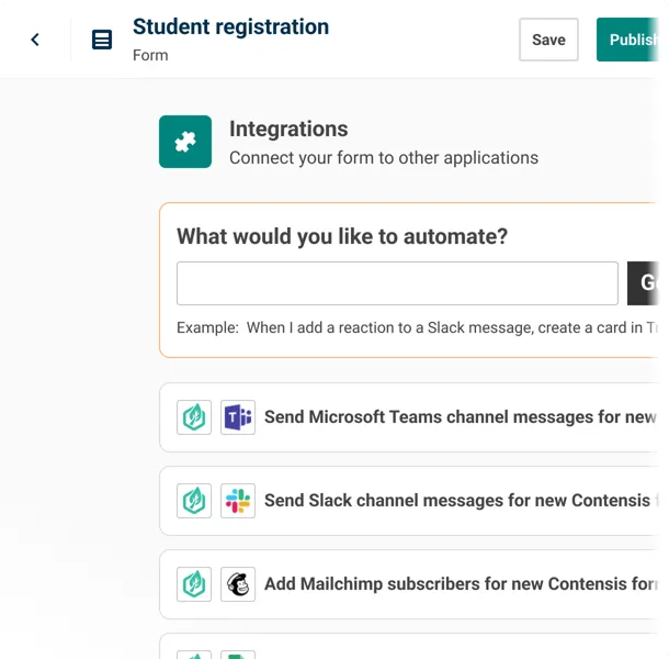 Say goodbye to endless copy and pasting between spreadsheets. Use our integration options to pass form data to external systems such as an email marketing tool or CRM platform and ensure your records are always up to date.