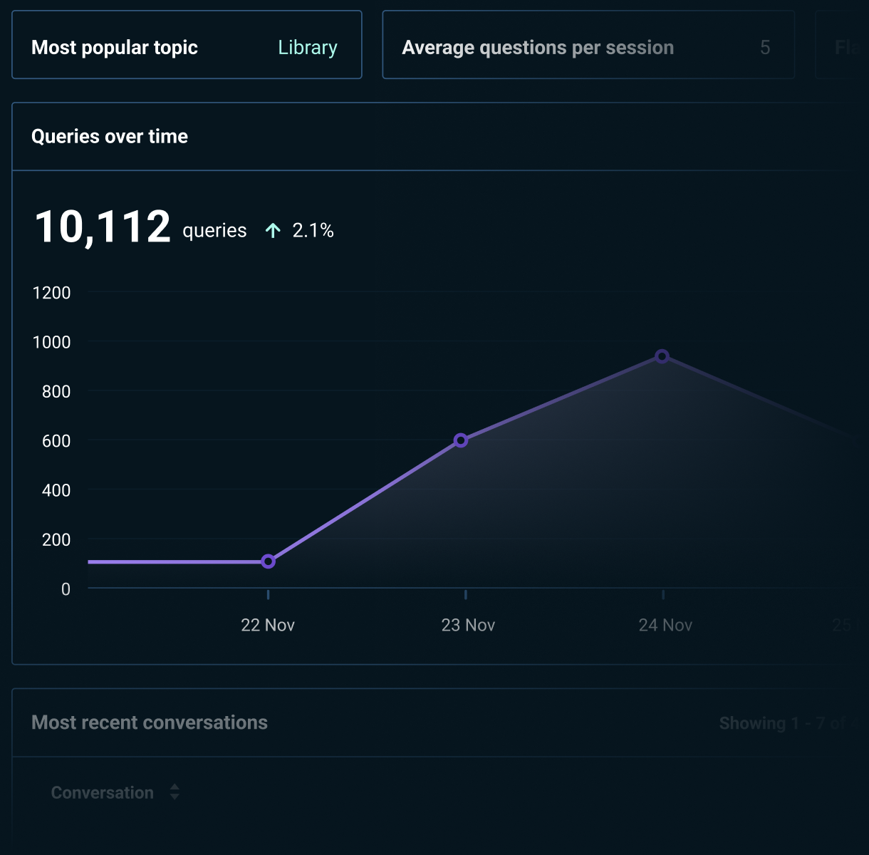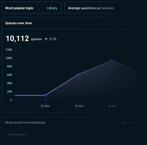 Track search volumes and session lengths to see when and how users rely on AI. These insights highlight patterns and help you deliver better support at key moments.